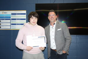 C’est le 2 juin 2025, qu’Antoine Bojean Zhu Noel recevait la Bourse pour l’engagement dans la réussite du Centre de services scolaire des Hauts-Cantons (CSSHC), catégorie « Secondaire – secteur East Angus ». Monsieur Martial Gaudreau directeur général du CSSHC lui a remis la distinction, accompagnée d’un ordinateur portable.