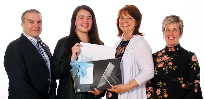 Lac-Mégantic, le 7 juin 2019– C’est le 1er juin que Madame Marie Therrien, finissante à la polyvalente Montignac, recevait la Bourse pour l’engagement dans la réussite de la Commission scolaire des Hauts-Cantons catégorie Secondaire – secteur Lac-Mégantic. Mme Carole Bourgault, commissaire à la CSHC, lui a remis la distinction, laquelle était accompagnée d’une tablette électronique.