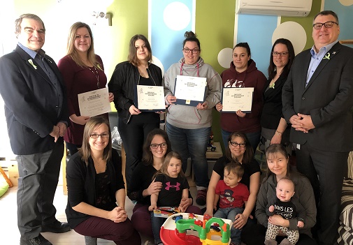 Lors de la remise des certificats, à laquelle participaient quatre des huit mamans à la formation, M. Jacques mentionnait : « J’applaudis fièrement cette initiative dont la noble mission fait une différence réelle dans notre milieu. Ce projet, de même que les parents qui y participent, méritent toute notre reconnaissance. »