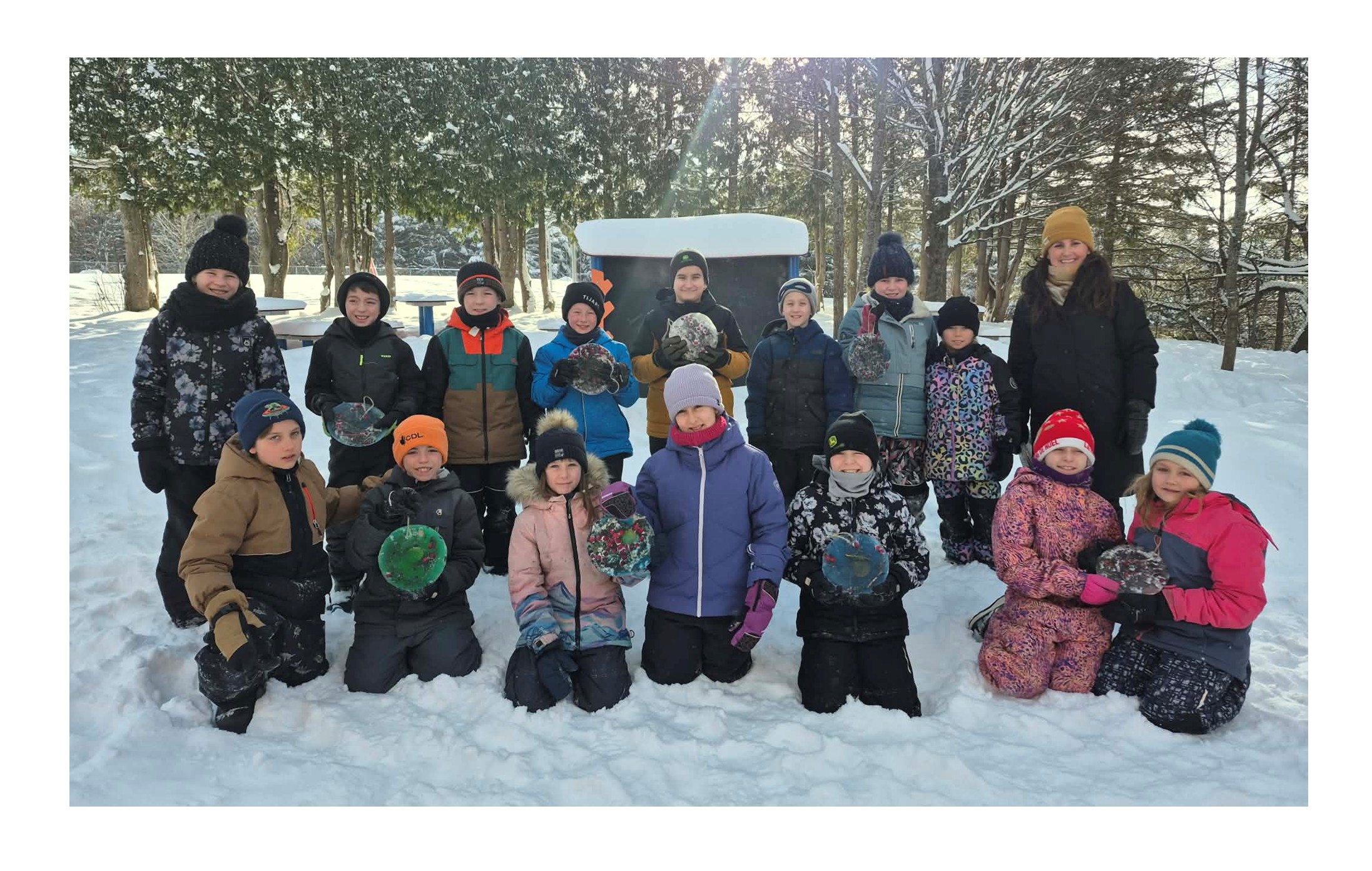Sur les photos on voit l’enseignante Mme Caroline Beloin et ses élèves.