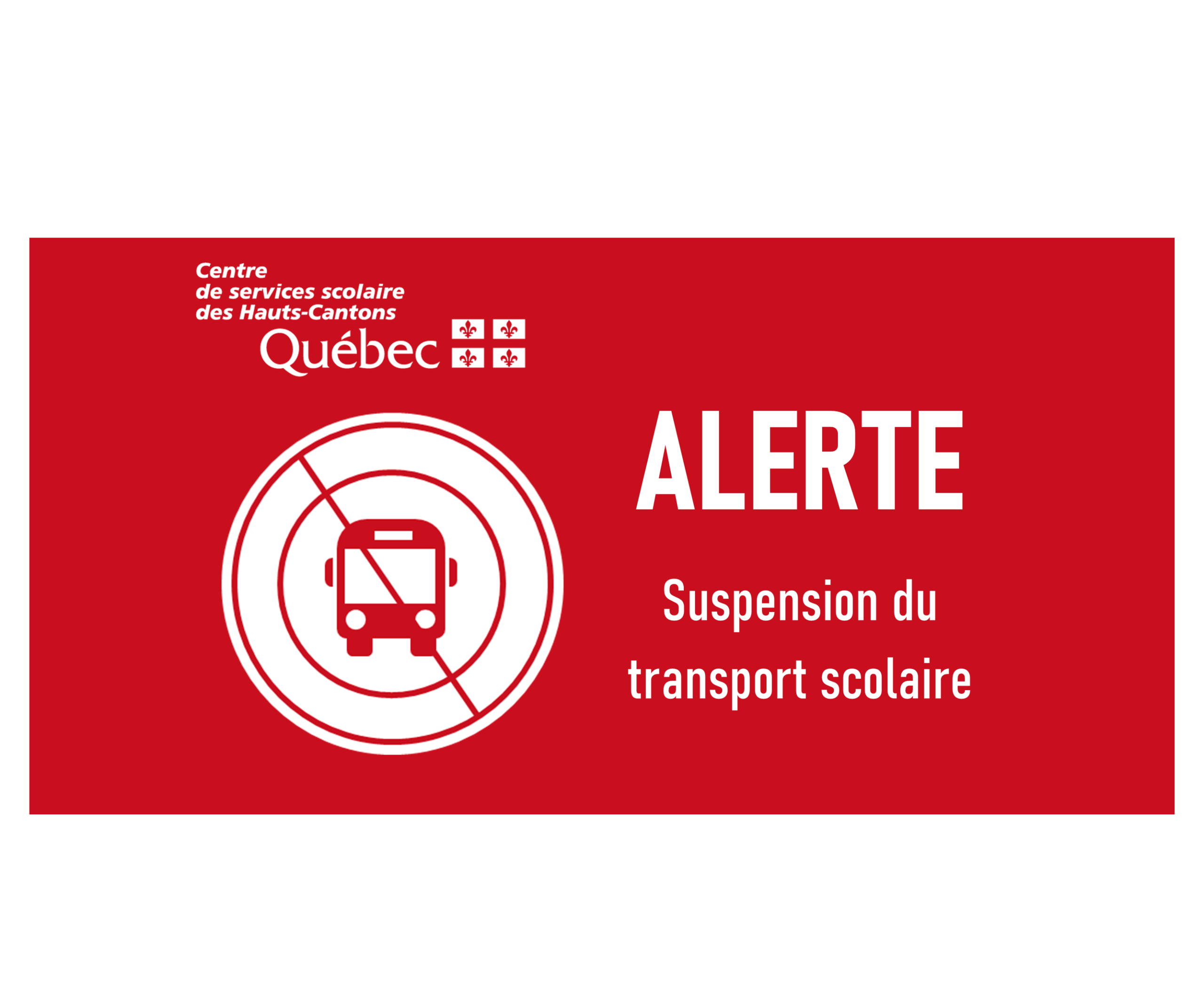 Action attendue : Vérifier vos courriels, la page Facebook ainsi que le site Internet du CSSHC pour être informés du fonctionnement du transport lundi matin.