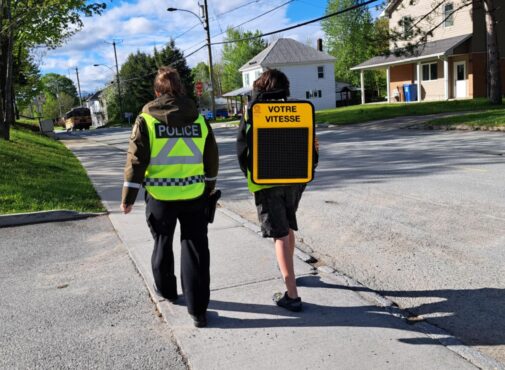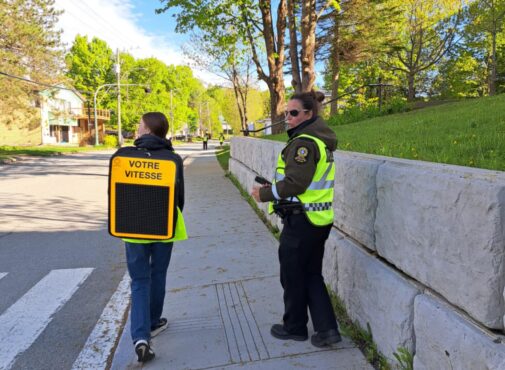 Le mercredi 21 mai, Éva Lessard et Henri Lupien, deux élèves de l’école de Dudswell sont devenus des radars vivants ! Ces élèves ont participé à la campagne de sensibilisation pour le respect des limites de vitesse en zone scolaire.