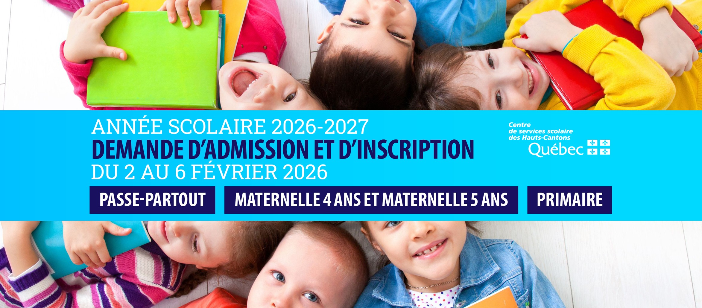 Les parents qui désirent INSCRIRE leur enfant pour la 1re FOIS au Centre de services scolaire des Hauts-Cantons devront se présenter à l’école de leur arrondissement SUR RENDEZ-VOUS.