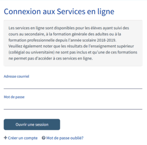 Les relevés des apprentissages sont disponibles pour consultation sur le portail de l’éducation du MEQ. S’il s’agit de votre première visite, veuillez suivre les étapes suivantes :